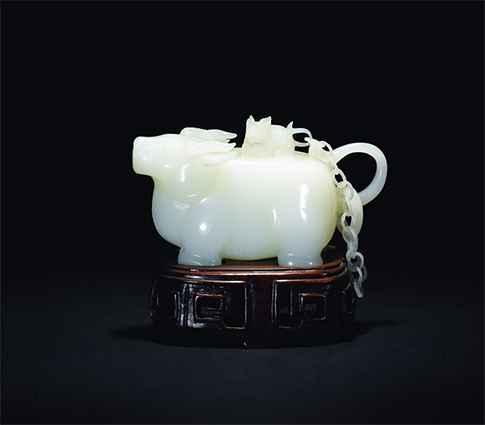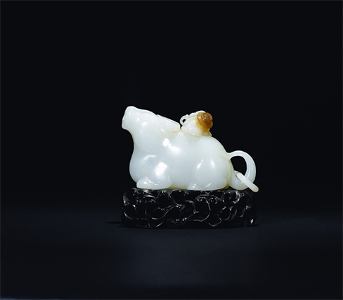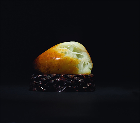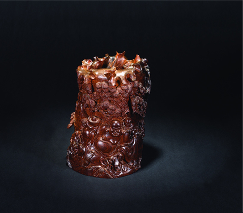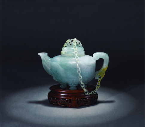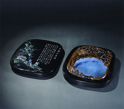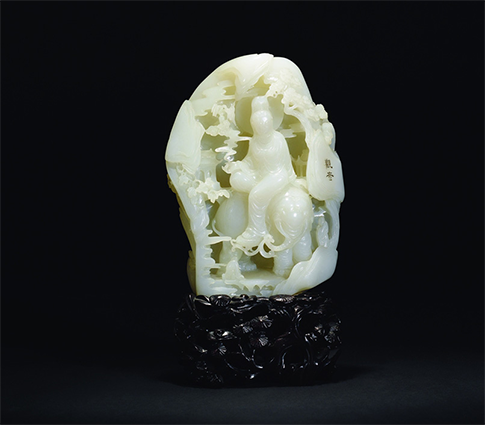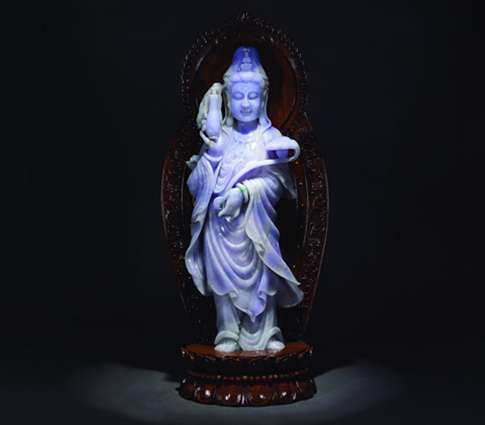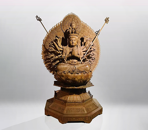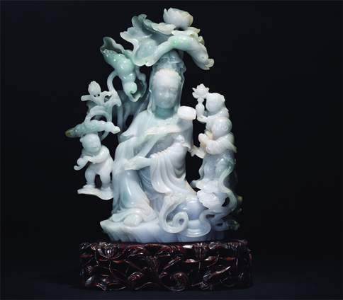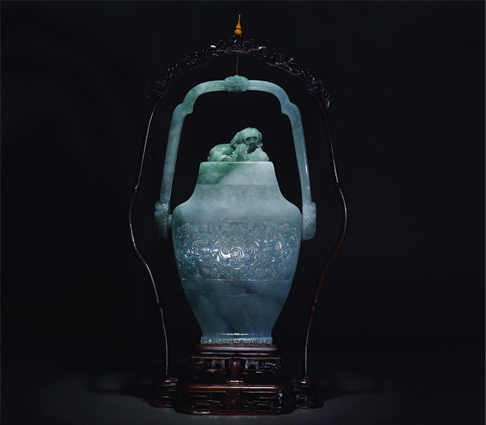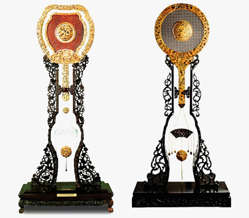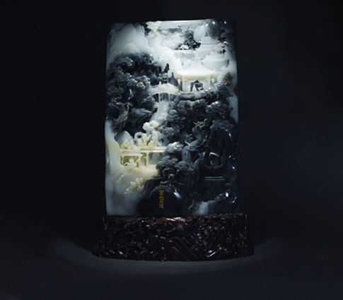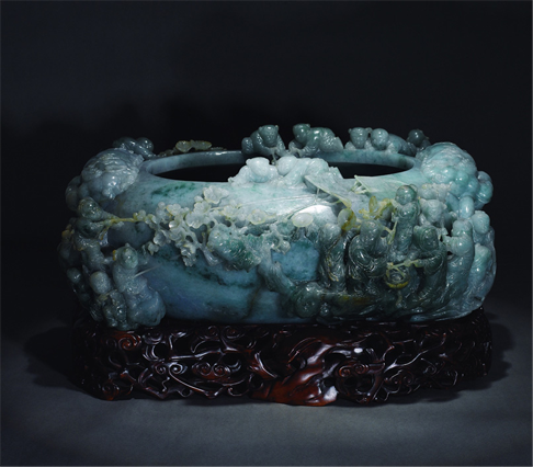 兩件作品均選用檀香木、紫檀木、翡翠等制作。檀香木和紫檀木皆為珍稀木材,檀香木獨(dú)具香味,紫檀木深沉穩(wěn)重,兩者高貴古雅,皆為木中王者。
