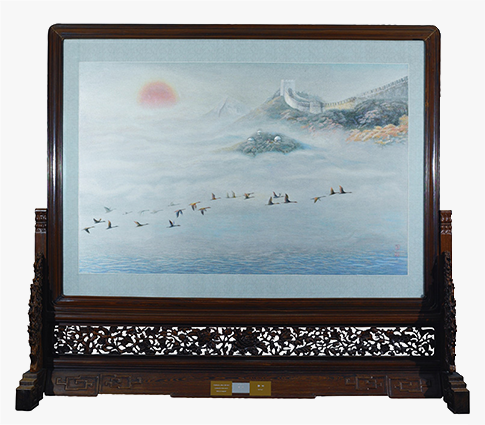 1999年,江蘇省人民政府為慶賀澳門(mén)回歸,先后制作兩把宮扇,名為“花好月圓”和“龍鳳呈祥”。“花好月圓”作為澳門(mén)回歸江蘇省賀禮贈(zèng)送給澳門(mén)特區(qū)政府,現(xiàn)展于澳門(mén)文化中心展覽館;“龍鳳呈祥”作為館藏精品,現(xiàn)藏于省工藝美術(shù)館。